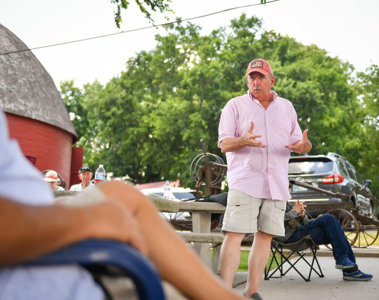 Joe interacting with the crowd during Fred Hill's Elm Tree Concert at the Round Barn in Arcadia on July 3, 2022